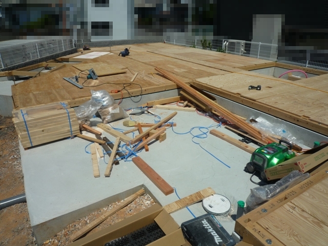 屋根の垂木と野地板の施工を翌日に残し、この日は終了。