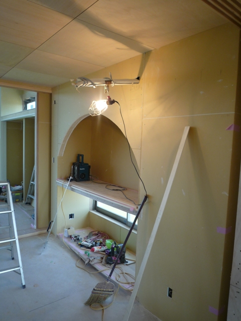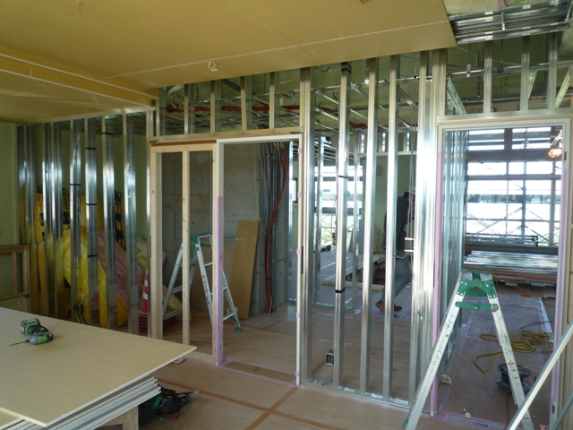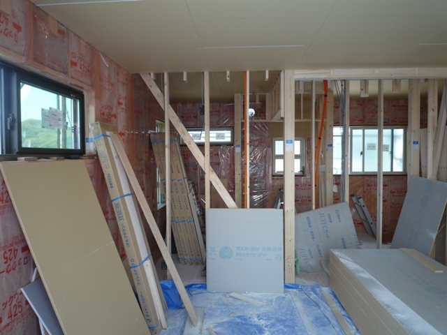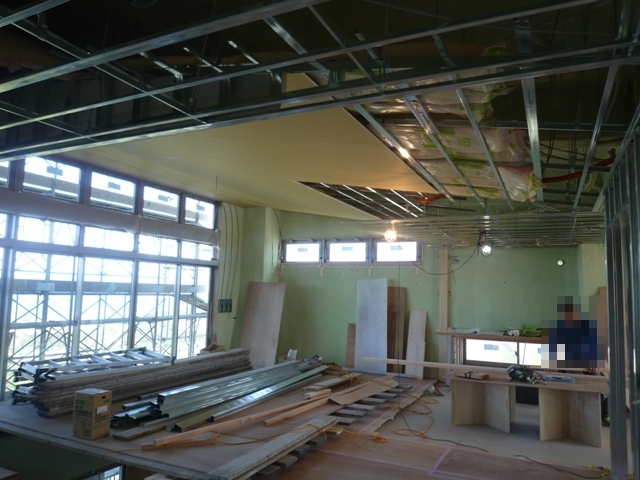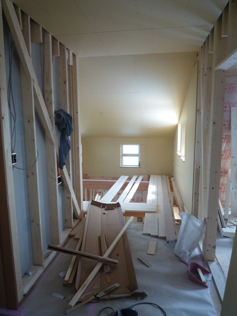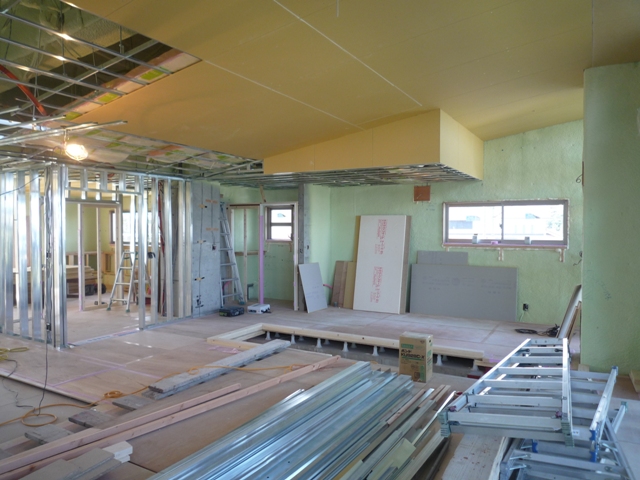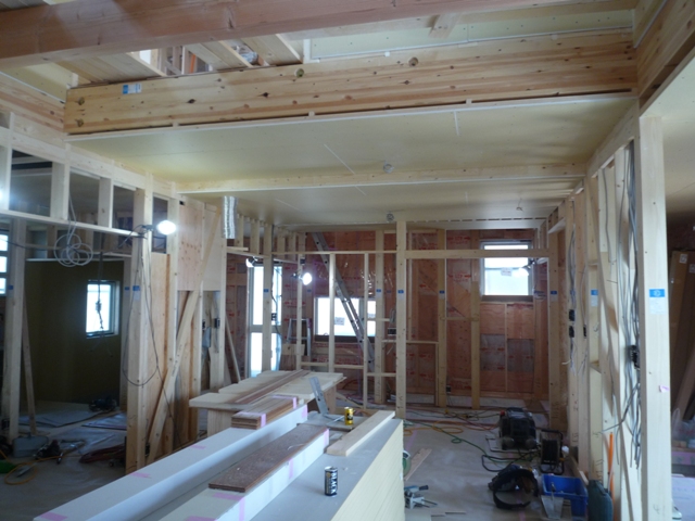 室内は、軽天下地屋さんと大工さんが造作の真っ最中。
