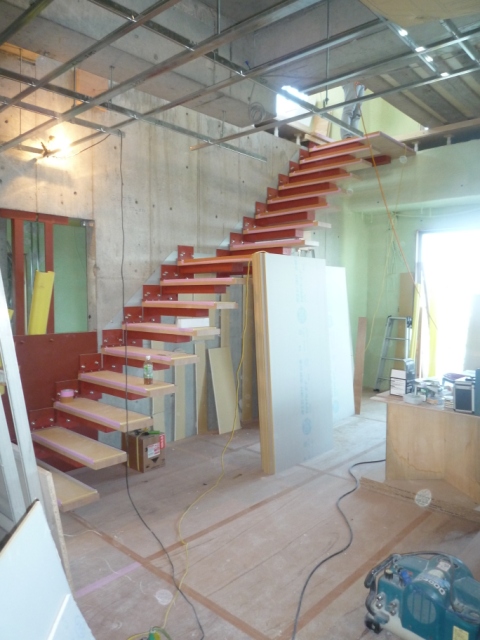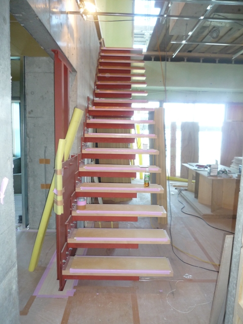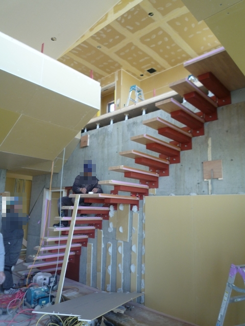 そうそう。 前回骨組みが取り付いた鉄骨階段。
