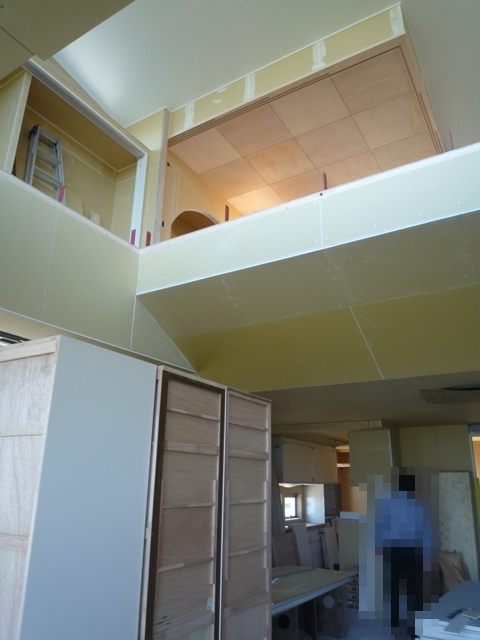 室内足場の撤去を早める為、最上部の天井の仕上も