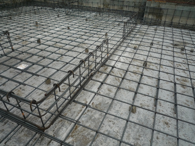 足元が悪い中、設計通りの配筋をチェック