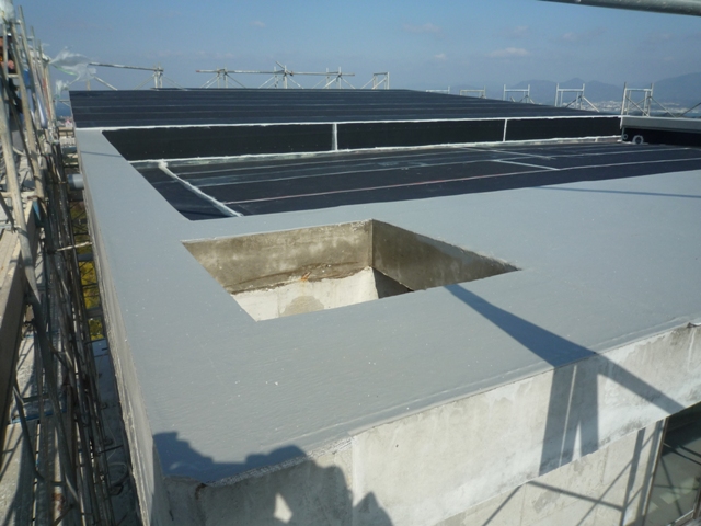 屋上の防水工事も施工中でした