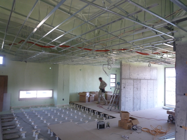 室内は、電気配線や給排水配管等の仕込み中。