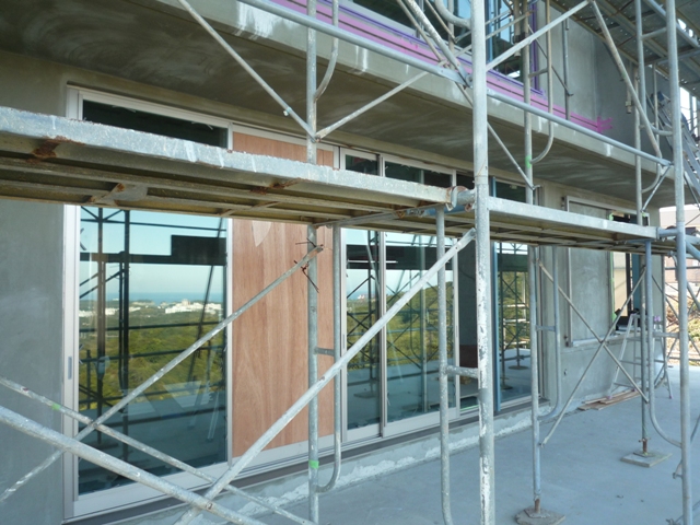 サッシが取り付くとほとんど外観は完成イメージ見えてきました。