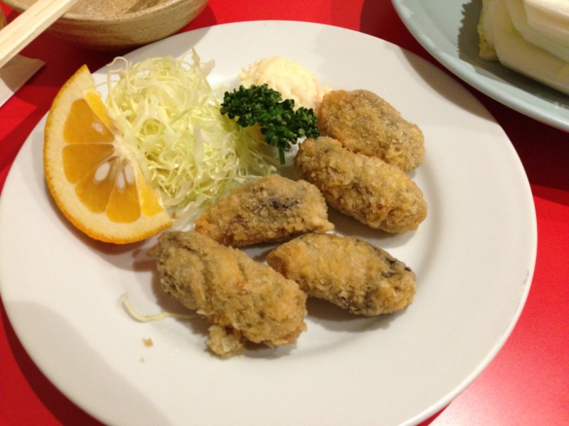 鍋を食べながら、次は「牡蠣フライ」