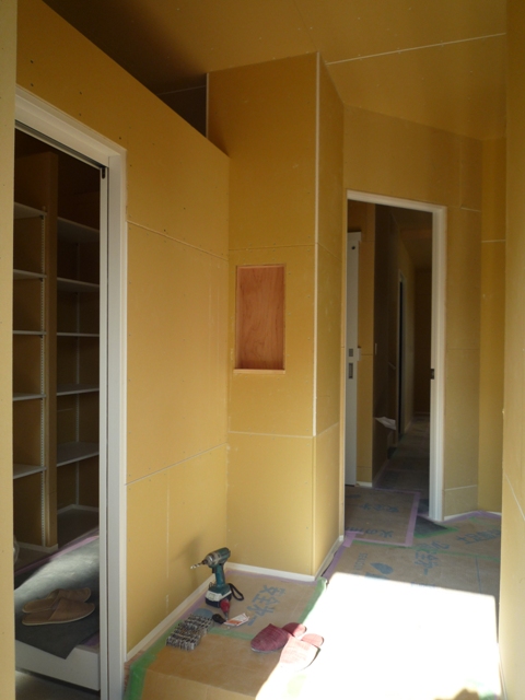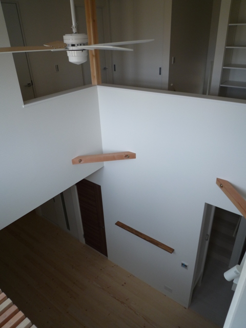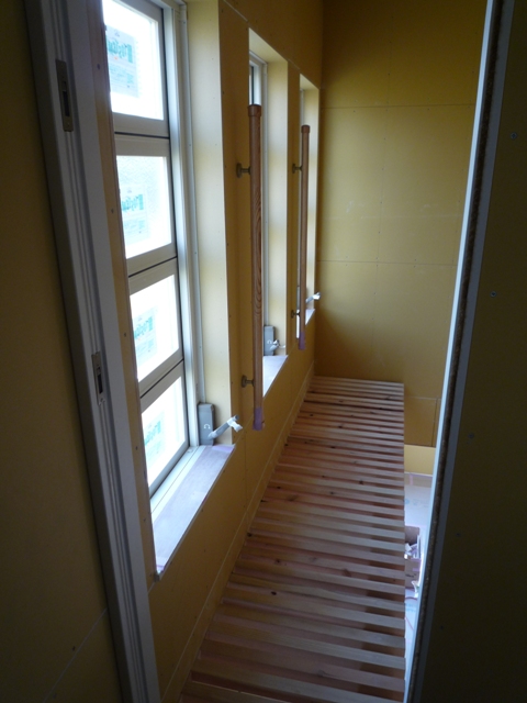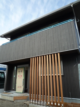 正面の木製ルーバーはこれから色を塗るところ・・・
