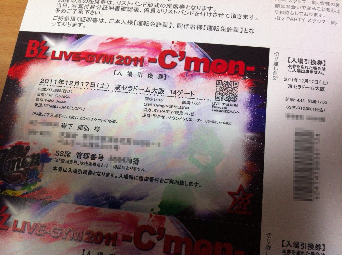 チケットがようやく届きました