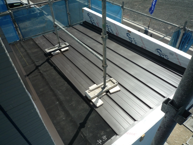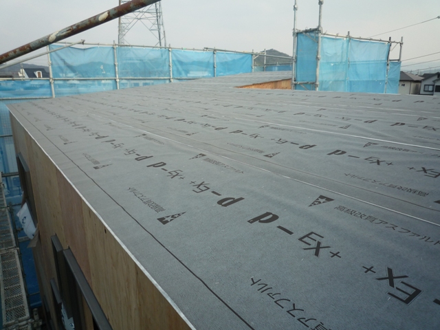屋根も下地(野地板)の上に防水層となるルーフィングを施工し、