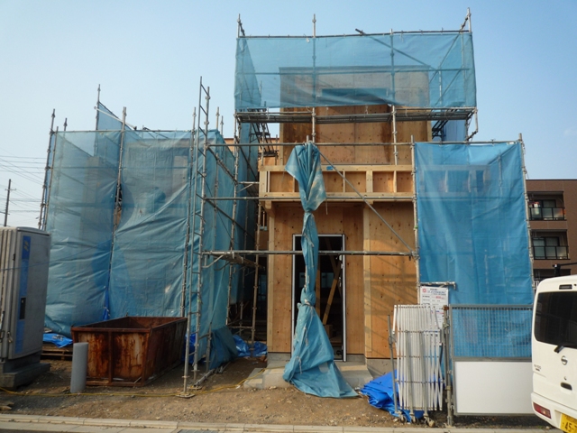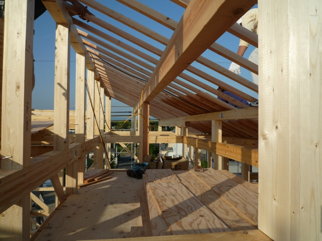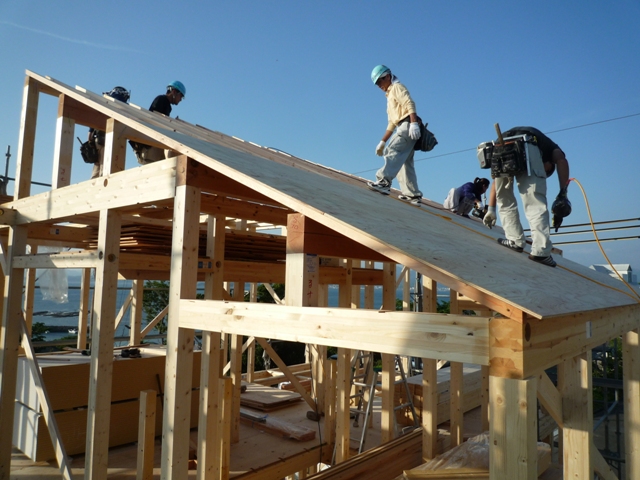 上棟後、速やかに外部を外壁下地材となる構造用合板で