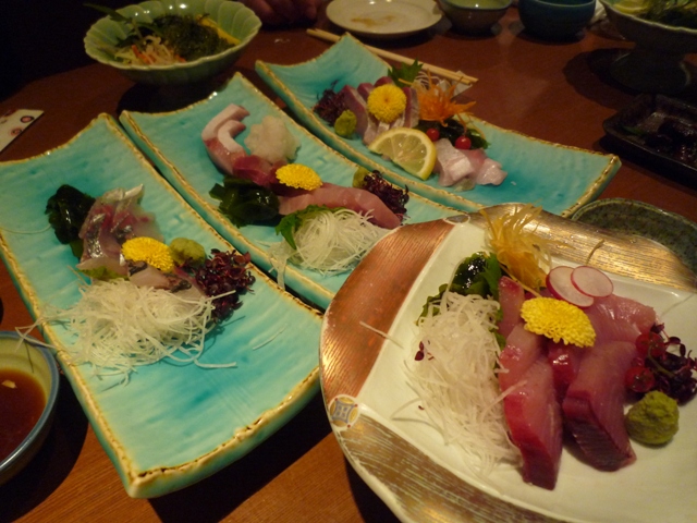 左から「アジ」、「ぶり」、「カンパチ」で手前が「ヨコワ」かな