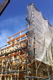 先日、上棟の様子をモバイルで少しだけお届けしました