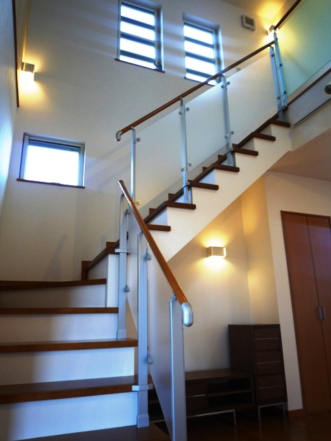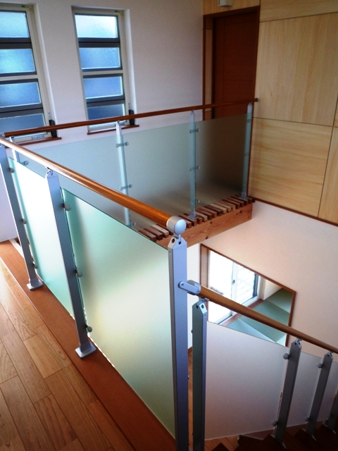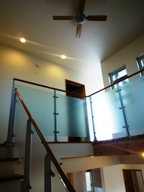 を手摺に採用!光も透過するので、全体的に明るい