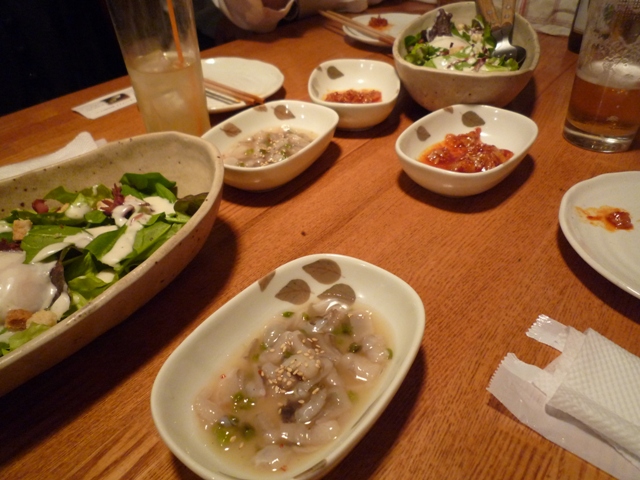 先ずは、ビールと突出し(蛸わさび&チャンジャ)で