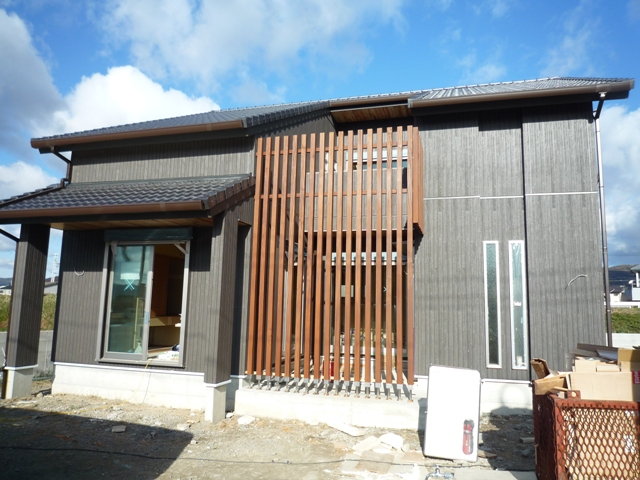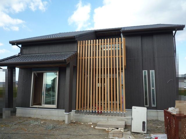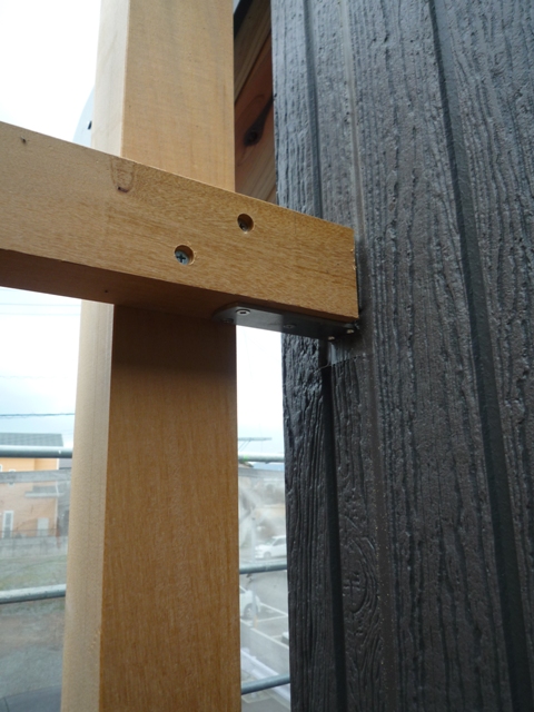 この格子が外観のアクセントと目隠しの役割を担います!