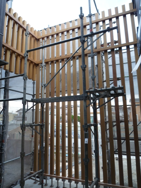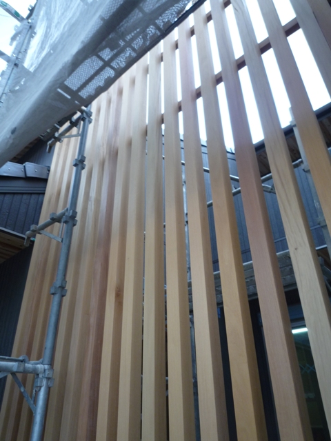 正面の木格子はこれから着色をしますので、