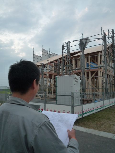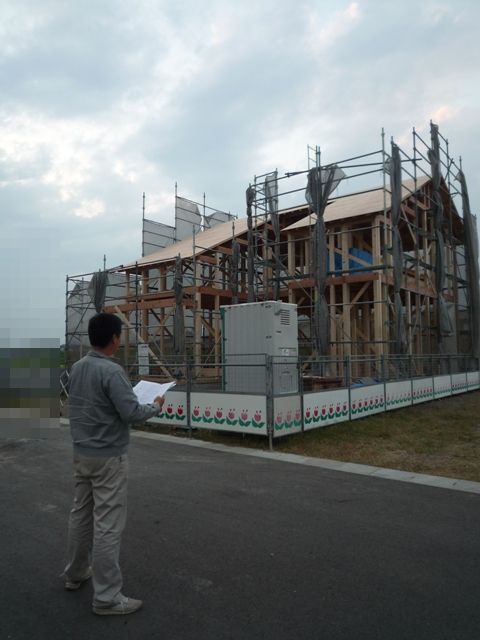 お施主様をはじめ、僕も屋根の色と形状は期待を
