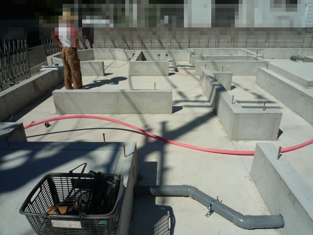 基礎工事も終わり、建て方前に、床下配管の仕込み