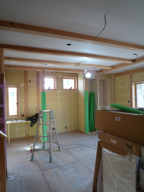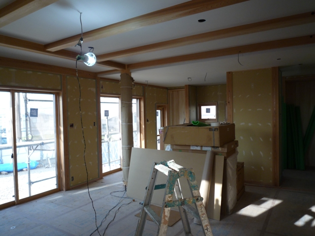 壁は塗り壁なのでこれからです。壁も白く仕上がると、もっと明るい印象になります!