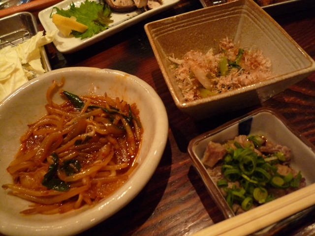 )お通しとモツ鍋の残りに、