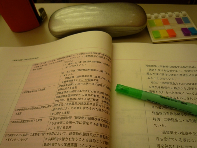 終了考査に備えます!改正法令の詳細や、最近の建築の動向など、