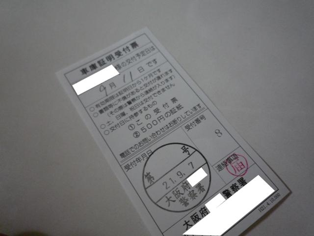 大阪での車庫証明申請を面倒臭そうだったので、