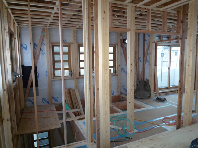 中間検査合格後は、電気屋さんの配線工事や